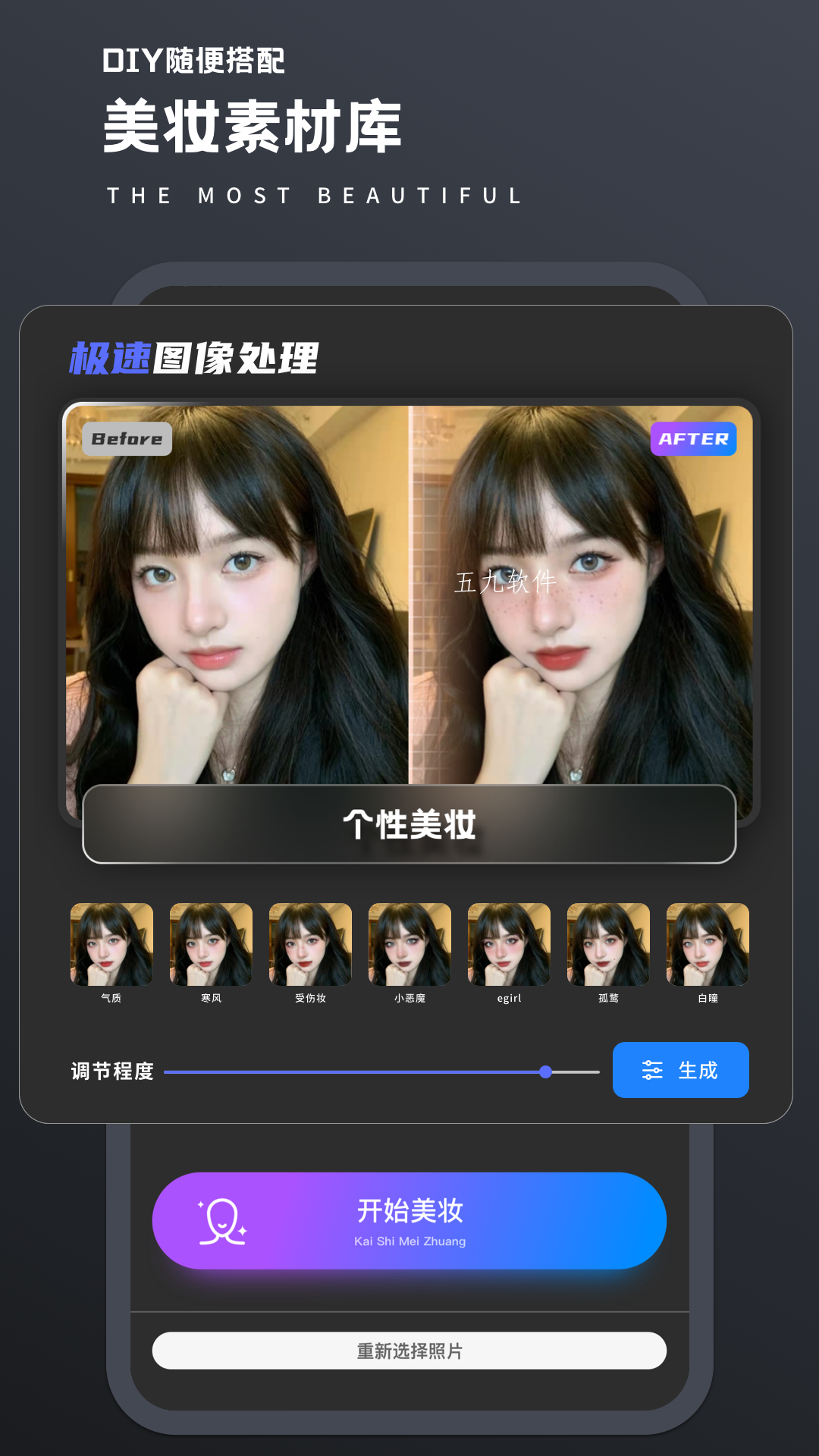 1、个性美妆 拥有多款精致妆容,只需要一秒,即可让您的妆容变的精致又美丽。