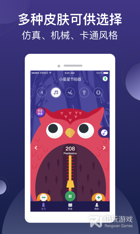 小星星节拍器是一款非常实用的节拍器软件,软件功能非常强大,这里提供木鱼敲击声、架子鼓声、人声等多种音色,用户可以根据自己的需求来进行选择,还具有录音功能,操作非常便捷,感兴趣的朋友快来下载体验吧!