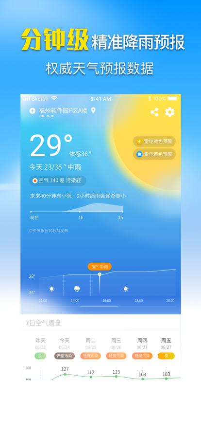 4.强大的天气推送功能,及时送达短时降雨、今日明日天气预报和灾害预警。