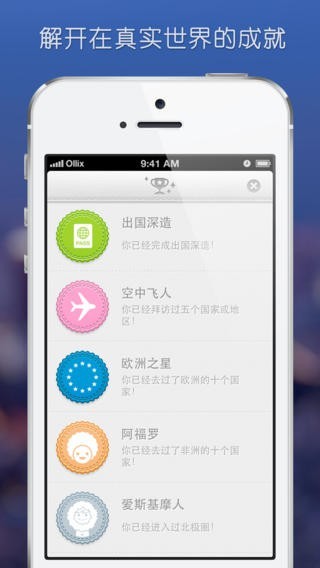 2、内置许多成就徽章,鼓励您环游世界,是一款不错的旅游软件;