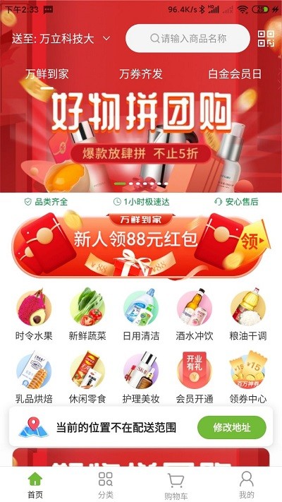4、优质服务: 万鲜到家注重用户体验,提供一小时送达、在线客服等贴心服务,为用户创造更好的购物环境。