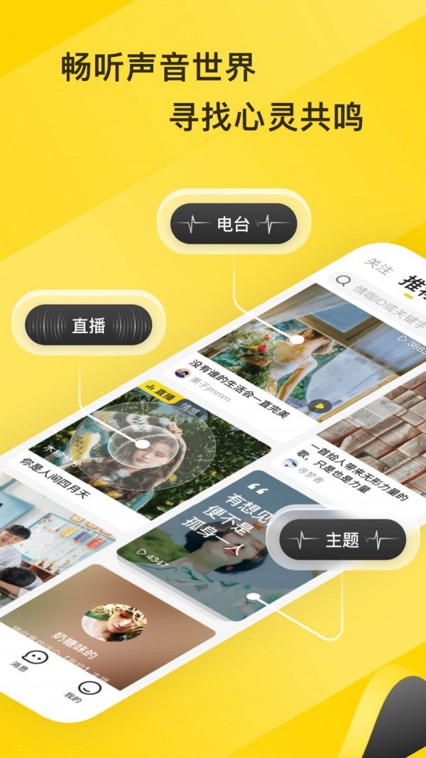 2、人人主播: 用户可以轻松注册成为主播,分享自己的声音和故事,增加了互动性和用户参与度;