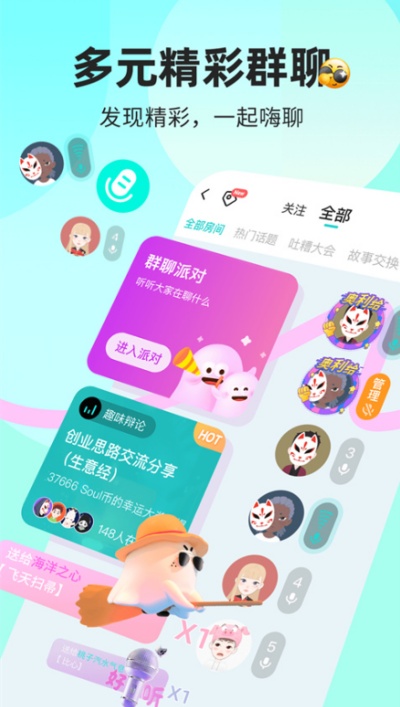 群聊派对:支持兴趣主题群聊创建与加入,用户可参与多人话题讨论、协作互动,高效拓展社交圈层。