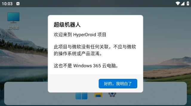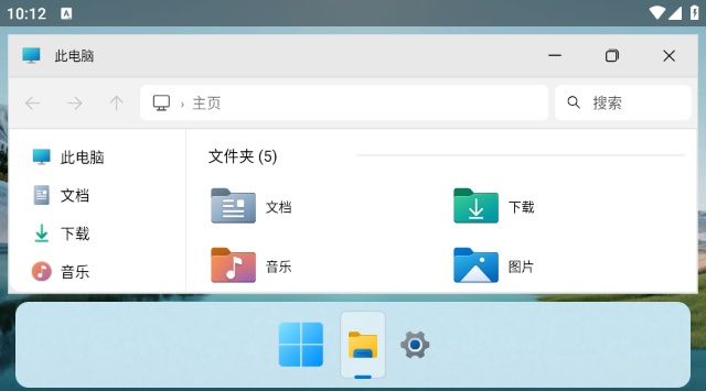 1、下载并安装HyperDroid中文版后,打开应用即可进入一个高度还原Windows 11风格的桌面UI界面,包括开始菜单、任务栏、窗口布局等元素,带来沉浸式PC操作体验。