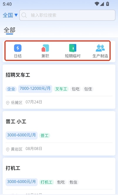 几何牛聘app安卓官方版就是一款专门给找工作的人做的,是个能搞定各种求职需求的一站式平台。几何牛聘app平台跟全国很多用人单位都有深度合作,能提供日结、兼职、短期临时这些类型的工作,像普工、小时工岗位都能找着。它会根据你的实时定位,推荐附近合适的岗位,你也能输关键词快速搜职位。每个岗位都有详细介绍,你在平台上就能直接报名、分享岗位,还能一键打电话跟 HR 一对一咨询,沟通特别方便。用户可以通过分类搜索或输入职位名称,找到同城合适的工作。