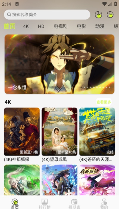2、无广告纯净体验:播放全程无片头广告、弹窗广告,界面简洁,仅保留核心功能入口(首页/排行榜/排期表/我的)。