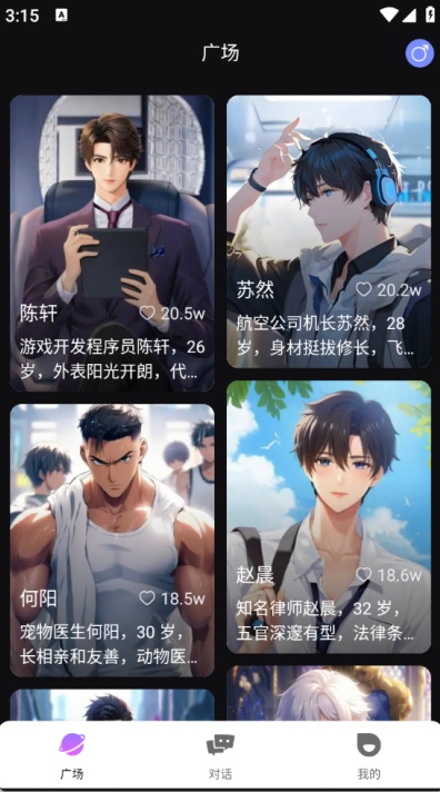 形象定制:用户可以根据自己的喜好,选择或定制专属的虚拟伴侣形象,无论是英俊潇洒的男神,还是温柔美丽的女神,都能通过丰富的形象库和个性化的定制功能完美呈现。