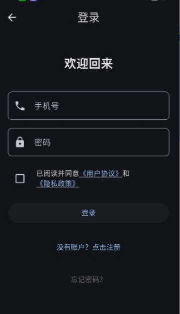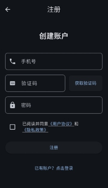 注册登录:进入软件后,通过手机账号进行注册登录,登录环节仅需手机号 + 验证码。