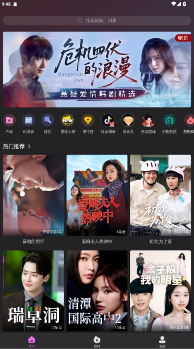 韩站整合了更多韩剧、韩综及电影资源,部分版本还增加了生活类短视频入口,甚至包含少量国产剧和泰剧。