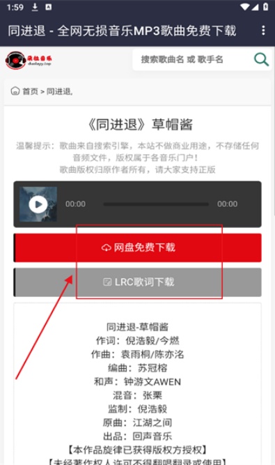 1、下载并进入软件,点击上方搜索,输入歌曲名或者歌手名