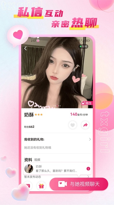 在线视频,告别“尬聊”:还在忍受没有温度的语音和文字聊天吗?甜心主打一对一视频互动,让沟通更直观、更真实。视频交友,让你轻松告别“尬聊”,每一次对话都充满温度!