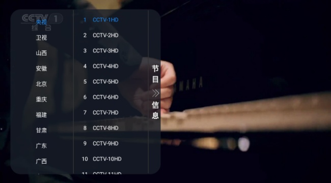 2、点击屏幕左侧弹出电视频道烂。