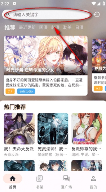 注册成功并登录后,返回“首页”,在最上面的搜索框可以输入漫画名进行搜索;