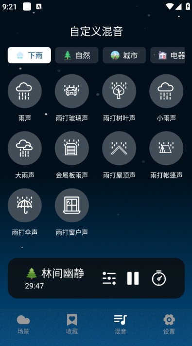声音混合:可以自由组合不同声音,打造专属于自己的“助眠背景”。