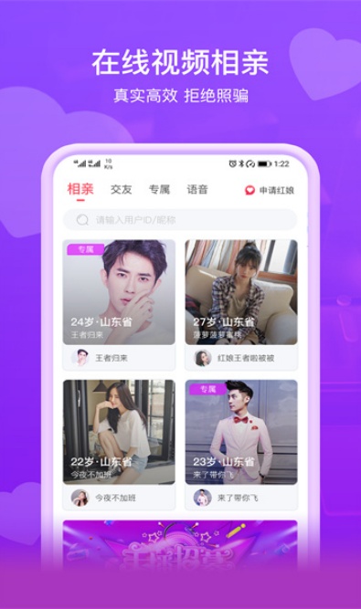 1、实名认证:实名身份认证,保证真人真照片真背景资料,严肃配对婚恋交友,非诚勿扰。