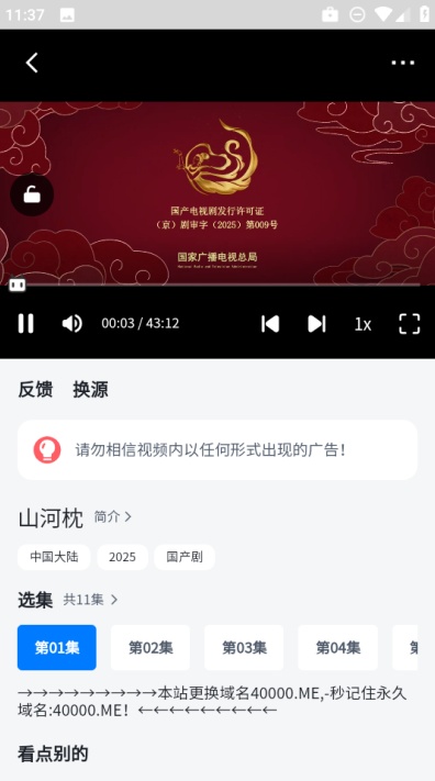 2、内置丰富的播放源,如果遇到网络不稳定或者播放不顺畅的情况,用户可以轻松切换播放线路,确保始终尊享流畅的观看体验。