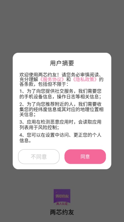 两芯约友app下载2026最新版是一款主打同城交友的轻社交软件呀,核心是帮用户快速对接身边的陌生好友,还搭配了多样互动模式和贴心功能。两芯约友app安卓官方版靠 “兴趣合得来 + 情绪能同频” 来匹配,帮咱们这些都市年轻人,在快节奏的生活里高效遇上聊得投机、还能处得久的同频伙伴~不管你是想找知己、饭搭子、旅行搭子,还是想碰运气找个潜在伴侣,在这儿都能开启自然不刻意的连接,不用尬聊也不用硬凑!不管是社恐还是想高效找同好的用户,都能找到合适的交友方式。