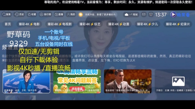 全品类内容矩阵:电影、热剧、综艺、动漫、直播频道一站式覆盖,告别多平台切换。