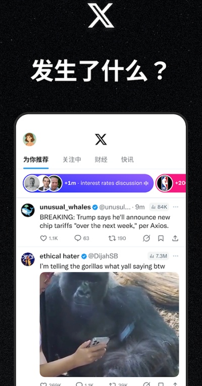 特推x官网入口中文版是一款全球超有名的社交媒体平台,在社交互动、传消息这些方面影响力超大,而且完全免费就能用。特推x下载2026最新版本就相当于咱们国内的微博,上面聚集了好多名人、大咖还有各种机构,想第一时间 get 最新的资讯、明星动态啥的,在这儿准能看着!咱们普通用户也能随时随地发动态,不管是分享日常、聊热点,还是吐槽两句,都能直接发,超方便~X推特(原Twitter)中文版大多做了中文界面适配,关键菜单、提示都翻译成了中文,对国内用户很友好。它保留了原版简洁的设计风格,安装包大概138.50MB,特别省手机空间,而且注册流程也有简化,支持用国内常用邮箱完成账号验证,不用太折腾。