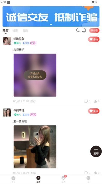 平台有严格的多轮审核和实名认证机制,会深度核验用户资料,杜绝虚假信息,认证过的用户还会有专属标识,能大大减少遇到骗子的概率。