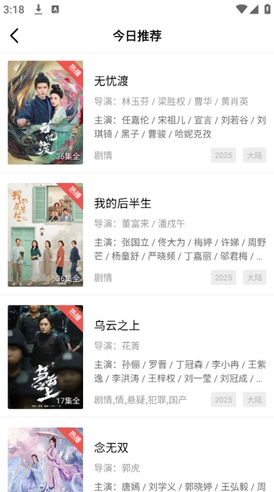 而且资源更新和主流平台同步,部分内容还能抢先看,每日会更新不少影视资源,还会通过分类和热度排行呈现内容,不用费脑就能找到热门佳作。