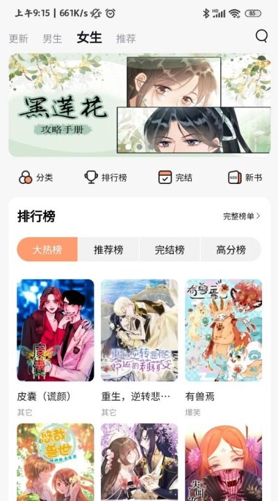 资源库堆得满满:国漫、日漫、韩漫、欧美漫全品类覆盖,热血、恋爱、悬疑、科幻、古风等 20 多种题材都有,热门连载、经典老漫、小众汉化作都能找到,每日更新 200 + 章节,追更从不掉队。
