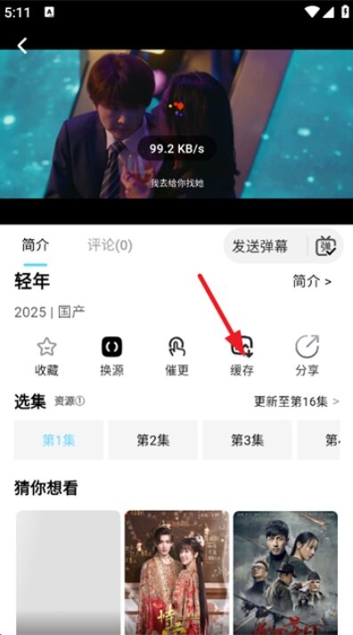 2、在视频的下方有一个“缓存”按钮,点击下载;
