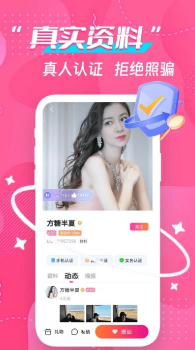 3、提供真实社交,海量优质男女,真人认证,严格审核,降低了用户遇到虚假和不安全用户的风险,能够更好地建立真实的社交关系