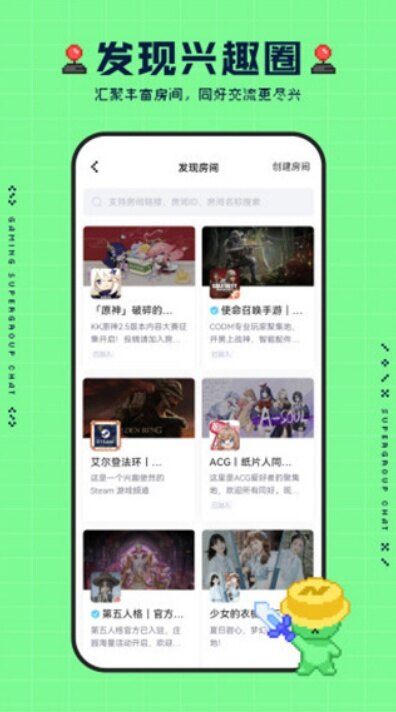 兴趣交友:按游戏品类找房间,通过共同爱好结识同好。