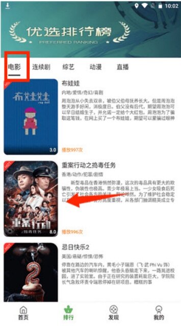 3、筛选热门电影:进入“电影”分类,页面内置优选排行榜,可直接在排行榜中浏览当下热门影片推荐,也可自行搜索特定电影,省时又高效。