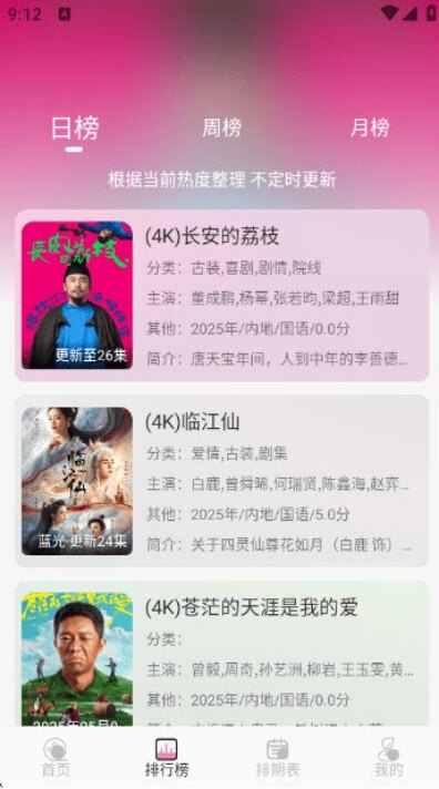4、切换到排行榜页面,可直接查看当前热度最高的影视剧,点击就能一键播放,不用费心找热门片。