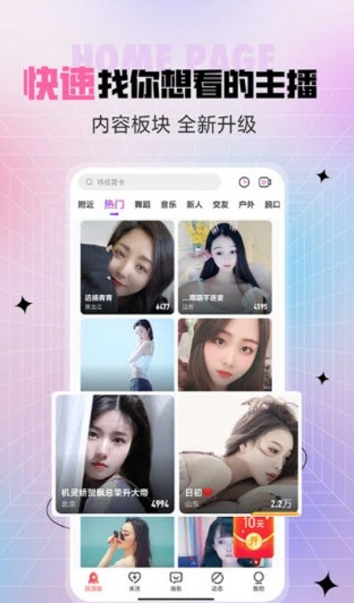 【同城直播】:精准发现同城心动女神主播,在线互动、结交同城好友,拉近彼此距离,解锁线下互动可能;