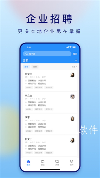 3.覆盖范围广泛方便轻松在线了解各类招聘信息,并进行在线咨询沟通专业职位经过层层筛选。