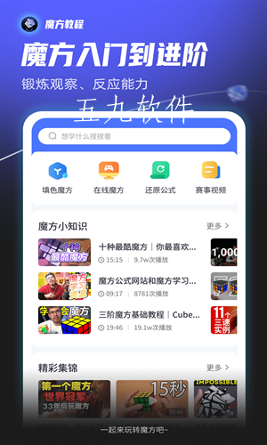 1.推送对应魔方知识内容管理通过搜索查看对应资讯,趣味课堂能够最大程度帮助用户进行还原魔方。