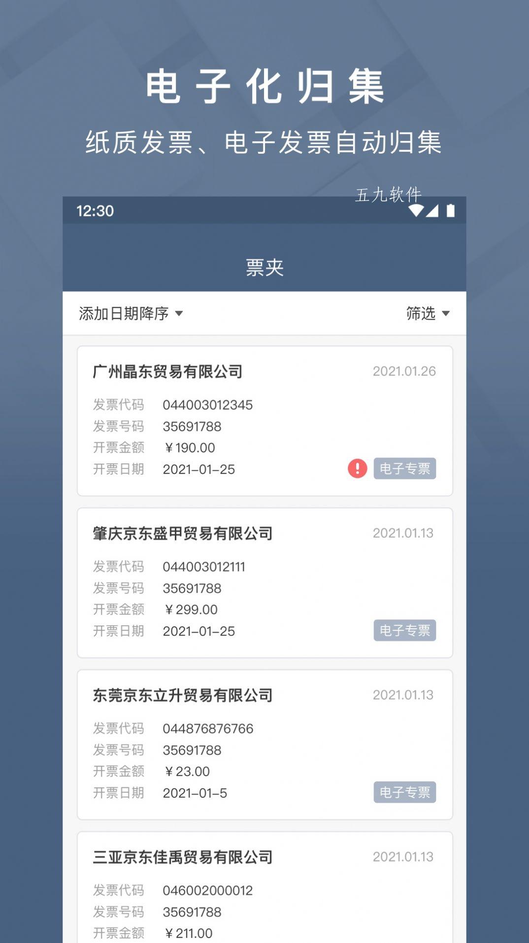 一款非常不错的手机在线发票管理软件,用户可以使用这款软件很好的管理自己生活中以及工作中的各种发票,十分的方便快捷,软件体积十分的小巧简洁,很适合用户日常使用,推荐对这款软件感兴趣的小伙伴下载使用,解锁不一样的生活以及工作体验。
