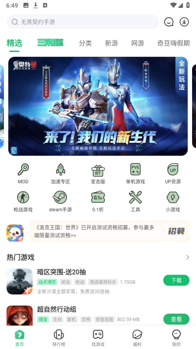 全新界面:全新设计,产品分类更清晰,游戏下载更顺畅。