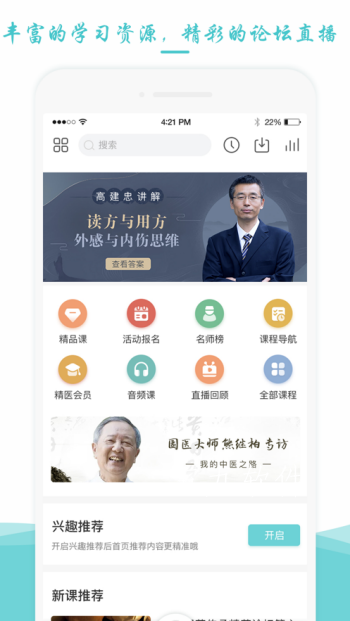 1、平台内讲课视频与培训课程紧跟随最新的学术研究数据,提供靠谱的中医学习资源;