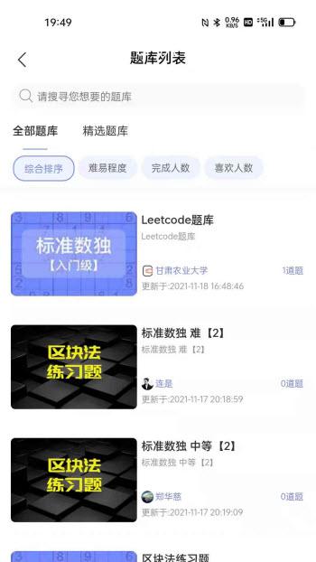 这是一款可以让你在这里将自己的题目练习变得更加的方便的软件,在这里有很多关于数独的题目,各种类型的题目在这里全部是能够让你看到的哦!还能够让你在这里将自己喜欢的题目以及自己的感兴趣的话题进行讨论哦!这是一款可以让你更加有挑战性的软件,快来下载使用吧!