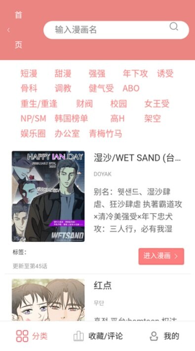 还有清晰的分类浏览和精准的关键词搜索功能,按题材或者搜漫画名、作者名,都能快速找到想看的内容。