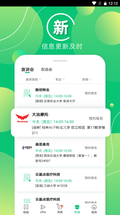 梧桐果app是一款专门为应届生打造的校招软件,这里所有的工作都是校园招聘的,用户们通过这款软件能够让自己的工作快速的得到着落。而且这里的职位都是非常的靠谱的,不会有任何虚假的职位信息,让用户们能够清晰的了解到这个职位的详情。