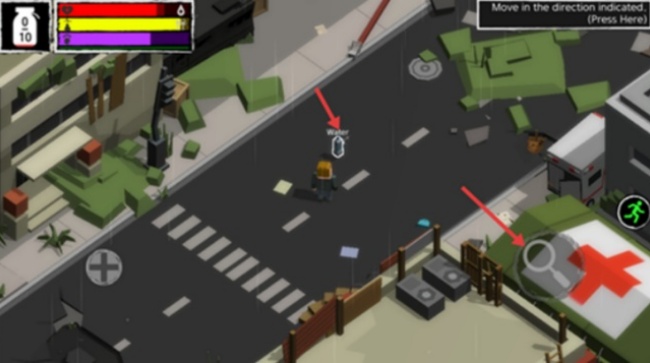 3、操作上十分简单易上手,左侧虚拟摇杆控制角色移动,点击放大镜图标可进入搜索模式拾取物资,靠近可互动建筑点击开门按钮,就能进入室内搜刮或触发隐藏事件。