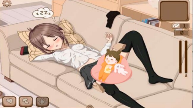 场景聚焦卧室,玩家面对一位躺在沙发 / 床上熟睡的少女,核心规则是不可叫醒她,需通过触摸与道具互动推进流程。