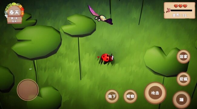 玩家身份:扮演一只小瓢虫,在微观世界开启 12 天生存考验,目标是存活并守护家园,最终进入繁衍模式延续族群。