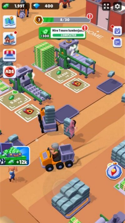 2、雇佣熟练的工人和经理,让你的工厂全天候运转。升级传送带和机器,最大限度地提高效率。