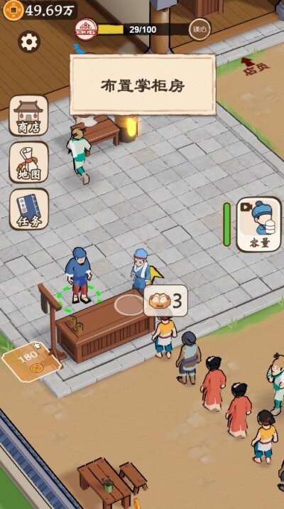 来铺子里的客人偶尔会头上会出现红色的感叹号,点击对话完成事件,可以获得钻石。