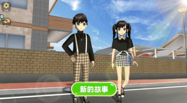 1、初始设置:进入游戏初始界面,除点击【新的故事】开启游戏外,玩家可通过【功能】按钮调整游戏参数,或进入【服饰】界面搭配角色外观,打造专属校园形象,部分服饰可解锁隐藏互动效果;