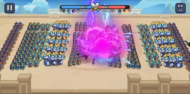 3、而且技能都是随机组合的,每次玩都有不一样的搭配,不会腻。实时战斗的场面也超震撼,几百个士兵同台厮杀,看着就热血。