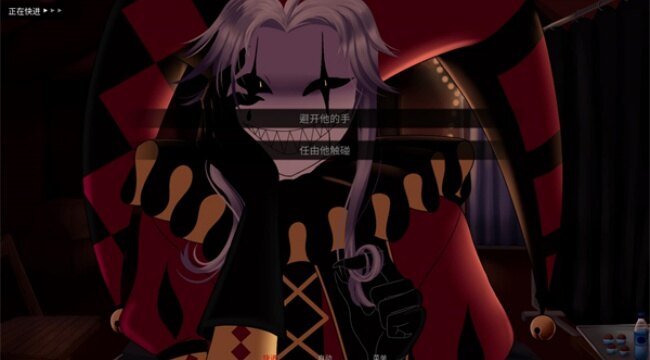 游戏有20 多个关键选择节点,部分选项还带时间限制,超时会直接触发坏结局。你的选择会实时改变两位小丑的好感度与竞争关系,最终导向8 种以上结局