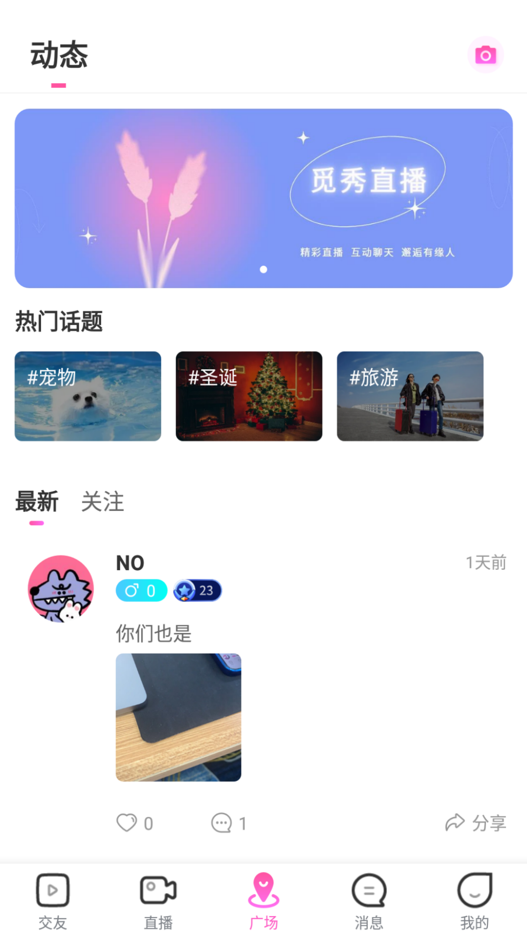 觅秀直播app是一款可以体验酷炫直播内容的视频直播平台,这里有着超多精细分类的高颜值直播,不同的标签对应着不同的直播风格。觅秀直播app软件加入了更多好玩的交友栏目,集交友、视频直播、附近约会等功能为一体,感兴趣的朋友快来下载吧!