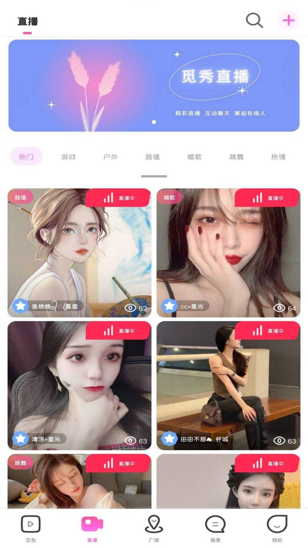3、涵盖热歌劲舞、户外直播、在线PK等有趣的直播玩法,任你选择观看。